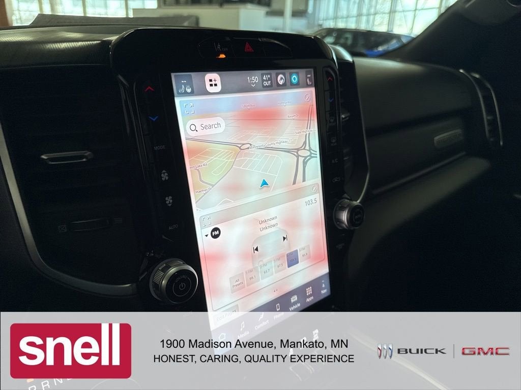The interior of this Ram 1500 is a sanctuary of comfort and technology. The 12 touchscreen display puts a world of connectivity at your fingertips, with features like GPS navigation, SiriusXM with 360L, and a premium 9-speaker audio system. The heated steering wheel and front seats provide a luxurious touch, while the configurable drive mode allows you to tailor the driving experience to your preferences.
